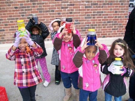 a big tub of bubble soap: http://www.youtube.com/watch?v=5YnBNH98WsU Girls Inc. members tries her hand at filming: http://www.youtube.com/watch?v=eFMy72H3dks